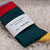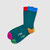Die leicht gerippte Wadensocke besticht in Ihrem dunkelgrünen Grundton und macht sie vielseitig kombinierbar, die farbigen Kontraste an Bund, Ferse und Spitze setzen links und rechts verspielte Akzente -